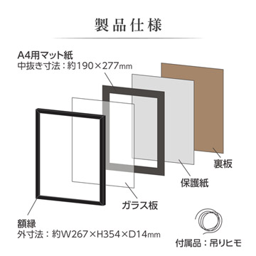 ■フレーム材質 : 木製 ■額縁外寸法 : W267×H354×D14mm ■マット外寸法 : W245×H332×D1mm ■マット中抜寸法 : W190×H277mm ■マット仕様 : Vカットマット紙 ■前面板 : ガラス ■重量 : 約715g ■吊りヒモ : あり ■スタンド : あり ■パッケージ : キャラメル箱 「カラー/サイズ」バリエーションを全部見る
