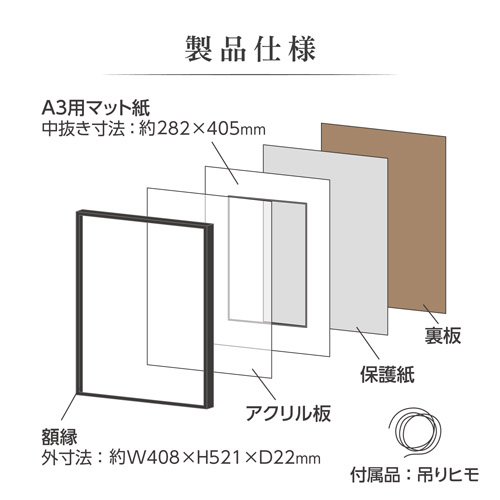 | ■額縁外寸法 | : | 約W408×H521×D22mm |