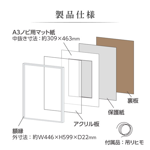 ■額縁外寸法 | : | 約W446×H599×D22mm |