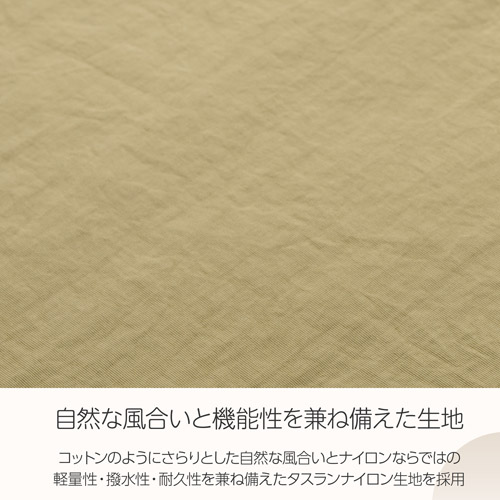 コットンのようなナチュラルな風合いと、ナイロンの優れた機能性を兼ね備えたタスランナイロン生地を採用したコンパクトなカメラショルダーバッグです。手触りが良く落ち着いたマットな質感は、カジュアルからアウトドアまでどんなシーンにも馴染みます。