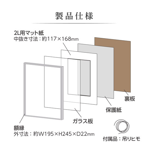 | ■額縁外寸法 | : | 約W195×H245×D22mm |