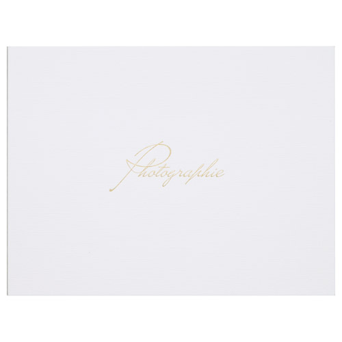 写真やメッセージは、差し込むだけで簡単にセット可能な差し込みタイプ。表紙には「写真」を意味するフランス語「Photographie」を筆記体でシンプルにあしらい、洗練された美しさと気品を纏った特別なカードに仕上げました。